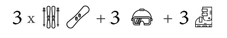 Taquillas 3x esquí/snowboard + cascos y botas.